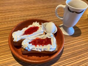 喫茶店モーニングのような食事とコーヒーが楽しめる、穴場スポットとなっています。